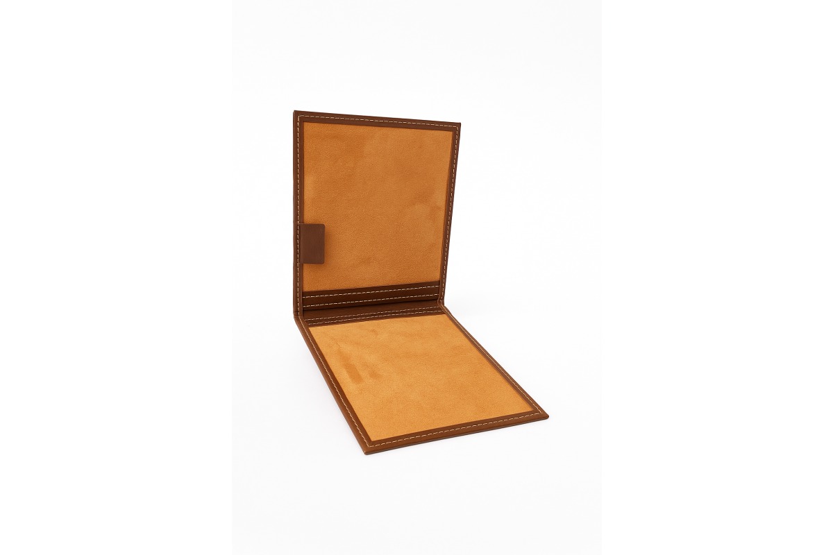 Porta recetario en cuero genuino de selección, con nombre o logo grabado en láser , porta lápiz interior.